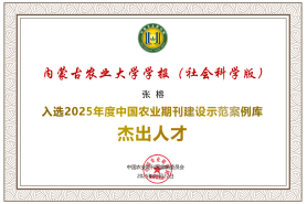 年会发布了2025年度中国农业期刊网评优入库名单。编辑部主任苏双平获得“优秀主编”称号,哲学与社会科学版编辑张榕获得“杰出人才”称号,自然科学版编辑边锦泽获得“优秀青年人才”称号,学报自然科学版、哲学与社会科学版双双获得2025年度中国农业期刊建设示范案例库“优秀团队”称号,学报编辑部获得“融媒体先进单位”称号。此外,本刊编辑董泰音、张榕分别获得2025年度中国农业期刊网研究基金项目立项。